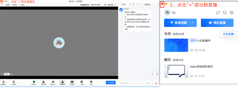 ● 解决方案:先完成鹅直播的授权,再退出鹅直播应用,然后重新打开鹅直播,使用屏幕分享选择窗口分享。