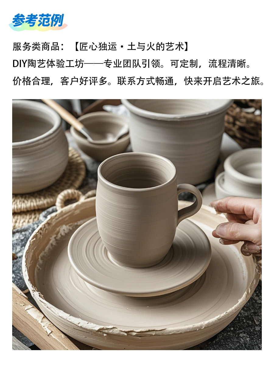 在编写服务类商品详情时,可以根据商品情况,分为以下部分进行编写(以下顺序不分先后)